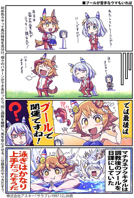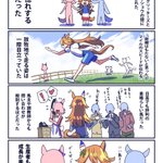 しゅき先生の作品に勝手に便乗して、スイカブレイクしたナリタブライアンさんのスイカが口に飛び込んできて美味しそうにスイカを食べるマチカネタンホイザさんとマチカネフクキタルさんを描きました。 #ウマ娘プリティーダービー #怒られたら消します twitter.com/melon_atatame/…