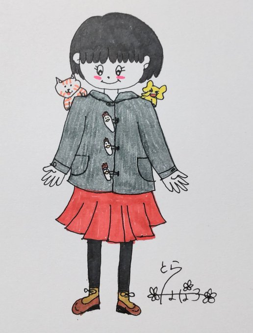 おはようございます!! ダッフルコートの、前の留める所が、 ニワちゃんに見える、はな子です😂 今日も素適な火曜日を〜🤗 #絵描きさんと繫がりたい #みんなで楽しむTwitter展覧会 #イラスト #油性ペン #マッキー