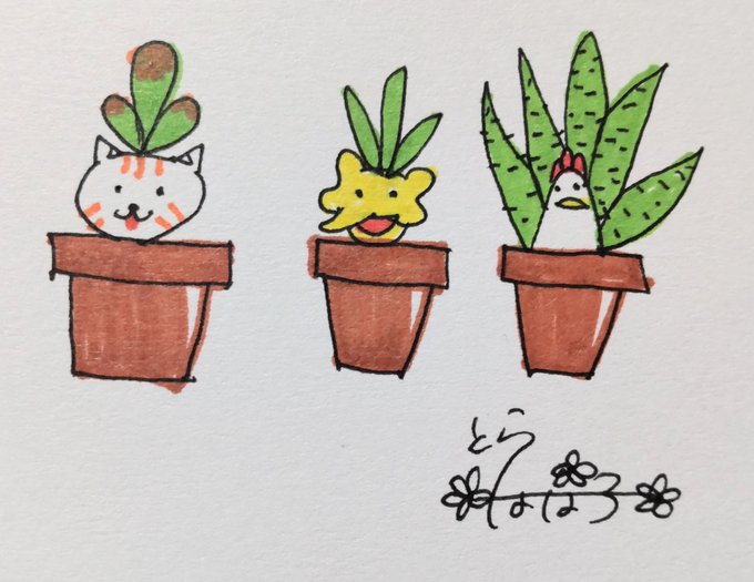おはようございます!! 喋る多肉植物、、!! 賑やかになるけど、うるさそう、、😅 今日も素適な金曜日を〜🤗 #絵描きさんと繋がりたい #みんなで楽しむTwitter展覧会 #イラスト #油性ペン #マッキー