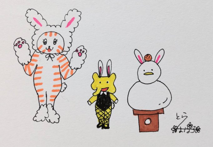 おはようございます!! 兎年の絵を描いてなかったので!! 三者三様のウサギです〜!! 今日も素適な金曜日を〜🤗 #絵描きさんと繫がりたい #みんなで楽しむTwitter展覧会 #イラスト #油性ペン #マッキー