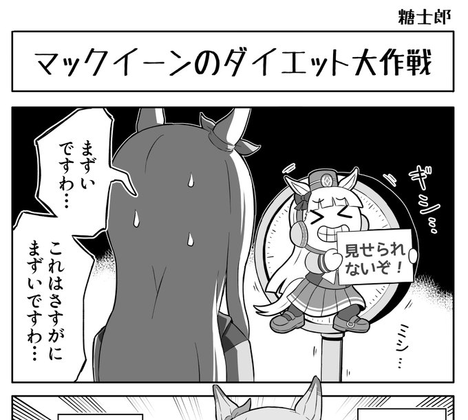 #マックイーン合同 こちらの合同誌にて寄稿させていただきました! 過去作リメイク三本と新作五本の計八本のマックイーン四コマを描きました。 よろしくお願いします! サンプル掲載の許可をいただきましたので一枚。 こんな感じのを4ページです。 twitter.com/norika50/statu…