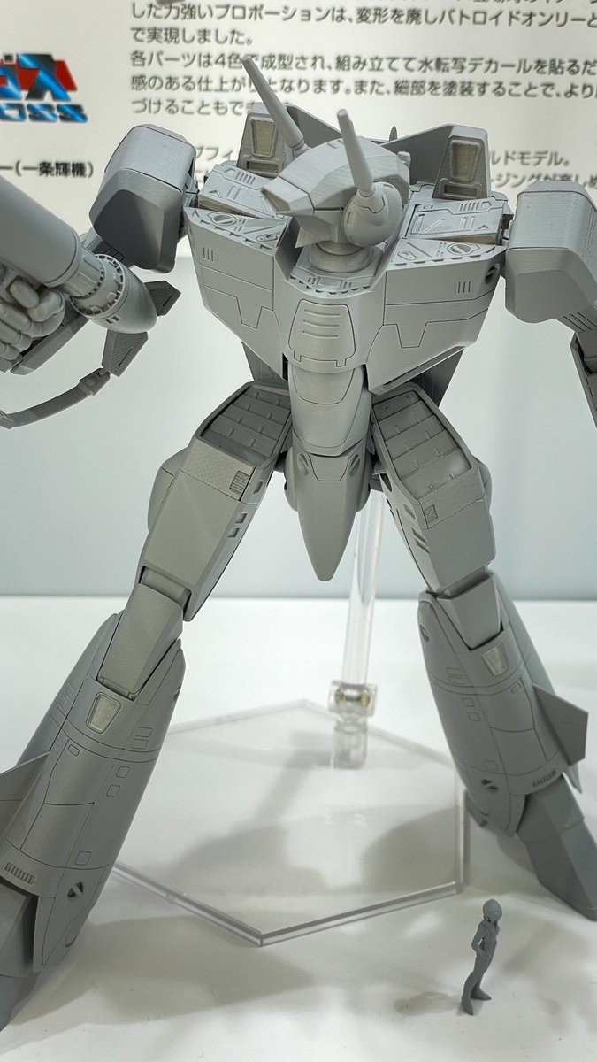 展示中のVF-1Jバトロイドバルキリーはお馴染みのポージングで展示中! 明日5/11の正午より受注受付しますので、気になる方はマックスファクトリー公式アカウントをフォローしつつ情報解禁に備えておいてください〜 #静岡ホビーショー #マクロスモデラーズ #PLAMAX #マックスファクトリー