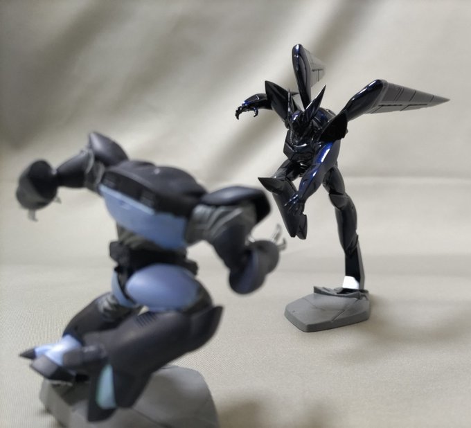 一月ぶりのツイ。 #マックスファクトリー の #イングラム と #クラブマンハイレッグ 全塗装で完成。イングラムのマーキングは #MODEROID から流用。クラブマンはつや消し後フィルタリングで汚しました。 #パトレイバー模型部 #機動警察パトレイバー #パトレイバー