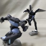 #今月作ったプラモ晒そうぜ グリフォン完成です。今月はこれひとつ。Mr.カラーのブラックにクリアーかけたあとシタデルで関節カバー筆塗り。メタリックレッドにクリアレッドを重ねたバイザーの赤が綺麗に発色して嬉しい☺️ #PLAMAX #パトレイバー #マックスファクトリー