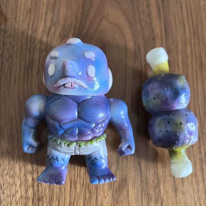 Oneupさんの周年記念販売に参加しています。ゾンビでマッチョな天狗おじさん、ゾンビ肉セット。こちら腕と頭の調整で、肉を抱えた状態にできます。ご購入された方はぜひお試しください。ちゃんと立ちますよ。 #てんぐアート #oneup. #マッチョな天狗おじさん