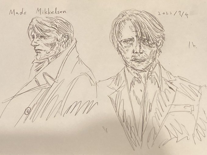 描くために画像探してたら段々あああどのマッツさんもカッコいいいいいって沼に落ちかけたり、描いてる途中キリアン・マーフィー に見えたり、まあ苦戦したけどなんとか仕上がった😂 #MadsMikkelsen #マッツ・ミケルセン #フォロワーさんの推しが描きたい