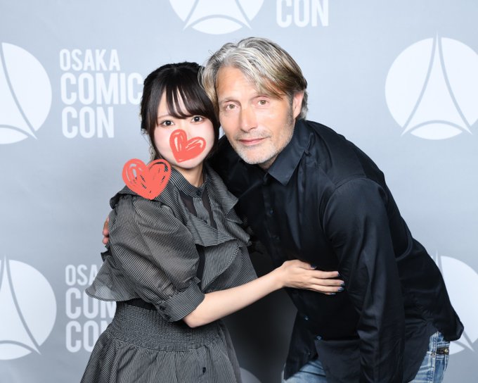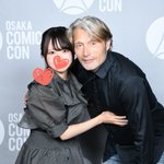 当日券があると聞いて弾丸でマッツに会ってきた… わんこ蕎麦のごとく早い撮影と目の前の神に頭が真っ白になった結果、マッツにパイタッチをする写真になりました。 (色んな意味で)ありがとうございました… #大阪コミコン #マッツ・ミケルセン