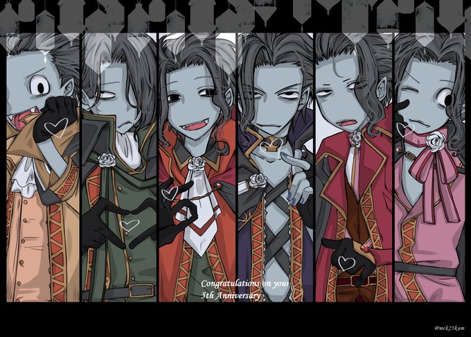 #マツノフ5周年おめでとう 遅れてしまいましたが5周年おめでとうございます✨💐✨ ヴァンパイアの6つ子ちゃんたちの衣装もストーリーも大好きです💖へそウォスタッフの皆様、素敵な派生を生み出して下さってありがとうございます✨❤️💙💚💜💛💗✨ いつまでも大好きです😚💕