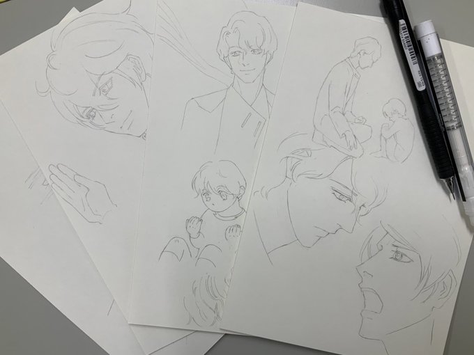 お疲れ様です♨️ 今回のヤマケット用キーマン本の目玉、アベマテ絵本の下絵完成です🎨❣️ この後透明水彩で着色、デジタルに取り込んで加工しま〜す⭐️ 入稿間に合いますように🙏💕💦 #絵描きさんと繋がりたい #アベルト・デスラー #マティウス・デスラー #世界絵師