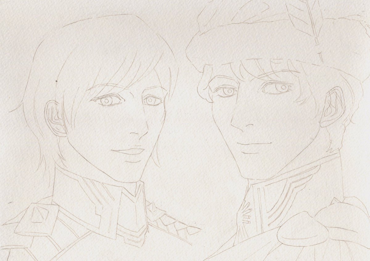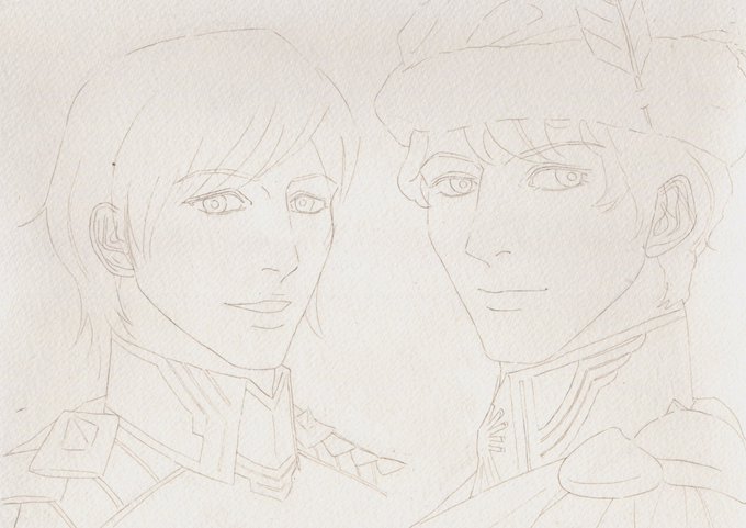 お疲れ様です♨️ エーリク勇退で、軍服がところてん式に下りてきました😊 お披露目のおめでたい日っていう設定ですら〜 キーマンも髪の毛撫で付けてます❤️ パパは羽帽子で王子様化🤴💕 着色しまーす🎨 #クラウス・キーマン #マティウス・デスラー #wip #絵描きさんと繫がりたい #コピック #世界絵師