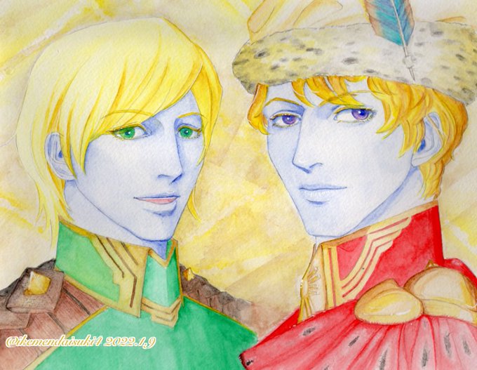 おはようございます🌞 #クラウス・キーマン誕生祭 はまだまだ続くよ❣️ (今更😅)新作完成ですら〜✨✨ 「Happy🎈birthday🎂ランハルト❤️」 #クラウス・キーマン生誕祭 #マティウス・デスラー #アベルト・デスラー #絵描きさんと繫がりたい #世界絵師