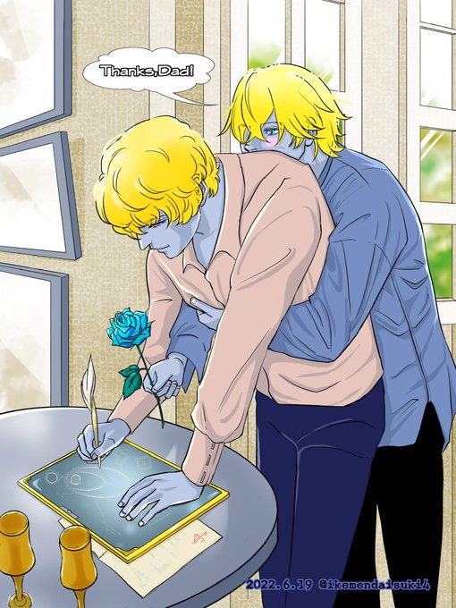 おはようございます☀️ 今日は #父の日 🌹 でもパパへの愛と感謝は365日続きます💖 (グラスが2個あるじゃないですか。 画面が狭くなるから描かなかったけど切れてる所にアベルトもいる設定です😁🍷) 良い一日を🌹✨ともに #yamatofanart #クラウス・キーマン #マティウス・デスラー