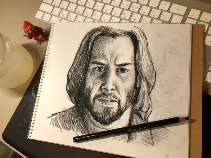 20分キアヌ 紙を敷かないもんだから右手真っ黒。今夜はもう一杯飲んで寝ましょ🌛 #落書き #スケッチ #マトリックス #マトリックスレザレクションズ #イラスト #イラスト好きな人と繋がりたい #映画 #映画好きな人と繋がりたい