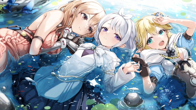 この度、マナシスリフレイン@ManasisRefrainというゲームのキービジュアルを描かせていただきました! 本日正式リリースです。 真ん中のミルドレッドちゃんは担当声優さんがあの!下地紫野さんです! ありがとう😭 DL先は→bit.ly/3mzB5U8 #マナリフ #マナシスリフレイン #マナリフ配信開始