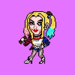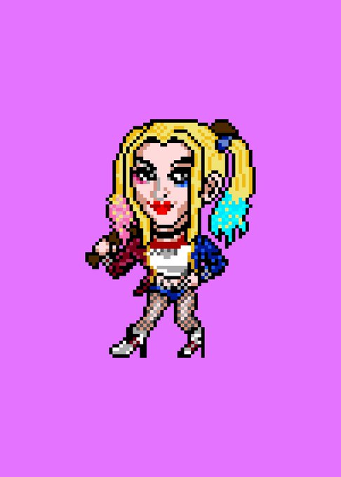 #マニマニリミックス #SuicideSquad の #ハーレクイン 元絵はトレースだから今回は割愛。 SDサイズですが足の艶かしさが気に入ってます。 ハーレクインかわいいんだよね。 #HarleyQuinn #pixelArt #ドット絵