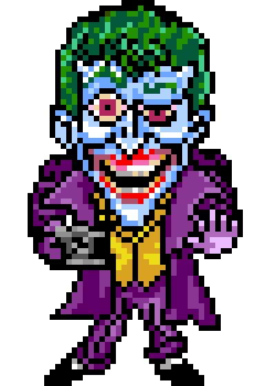 #マニマニリミックス 本日のお品書きは #ジョーカー 岩ちゃん @Drmellow3 からのリクエスト。ありがと! 元絵は色々あるから出さないけど今回は ホアキンジョーカーではなく #KillingJoke をモデルにオリジナルの #joker にしました。 色んなジョーカーが居るんだし良いよね。 #ドット絵 #pixelArt