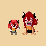 #マニマニリミックス 本日のお品書きは イチカ@PIeeeRRooT 君のリクエスト。 そしてイチカ君が生み出した #ライオンちゃんとツノ子さん のツノ子さんをリミックス! 僕はツノ子さんが本当好きなのです。 友人のキャラを僕が描くと言う行為はなんて文化的で素晴らしいのだろうか。 #ドット絵 #pixelArt