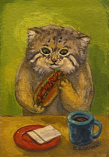 4/23 International Pallas's Cat Day There is an "Athene noctua(Little Owl)" on the head. 4/23 国際マヌルネコの日 #不二馬大叔 #Bu2ma #兔猻 #縱紋腹小鴞 #國際兔猻日 #pallasscat #マヌルネコ #Athenenoctua #LittleOwl #cat #9gag #meme #catmemes #catart #illustration #digitalart