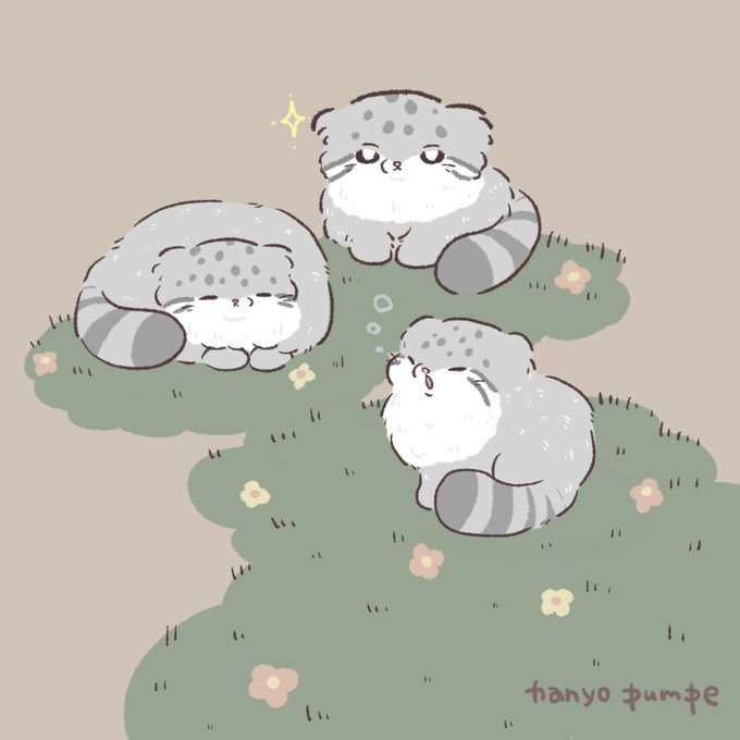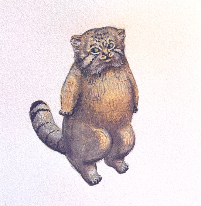 マヌルイラスト練習中🐱 「ワイルドライフ」によるとモンゴル平原のマヌルはシッポを振ってネズミを狩るらしい。縞々シッポがフリフリなんて マヌルは狩りも可愛いのか~😆 #マヌルネコ #manul #Otocolobusmanul #pallascat #Манул #wildcats #猫イラスト #Grumpycat #cat