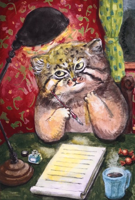マヌルイラスト練習中🐱 マヌルネコで夏休みの自由研究をやってみたかったなぁ~😄🌻🌞 #マヌルネコ #manul #Otocolobusmanul #pallascat #Манул #wildcats #猫イラスト #Grumpycat #cat #兔狲 #マヌルネコイラスト