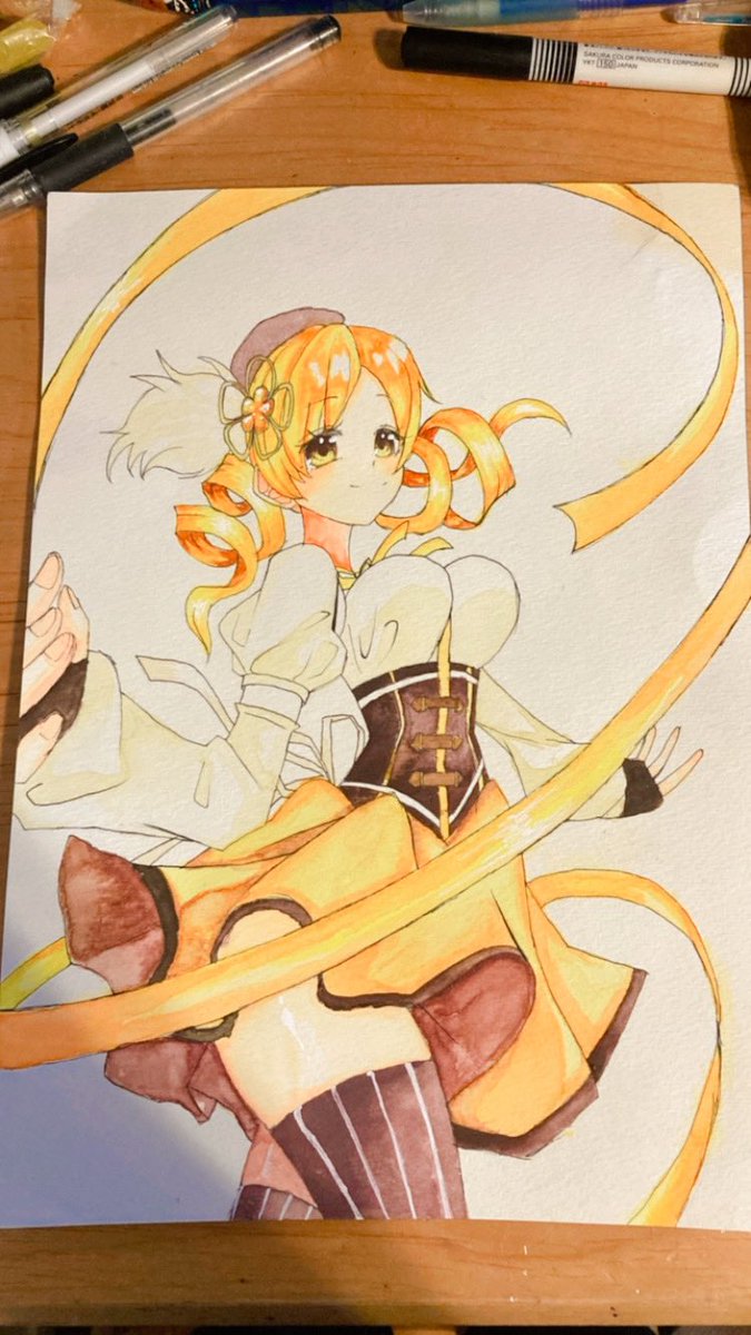 巴マミさん 水彩絵の具で7時間 めっちゃつかれたけど上手く描けたよ #まどマギ #魔法少女まどかマギカ #巴マミ #マミ #もう何も怖くない #私独りぼっちじゃないもの #イラスト #イラスト好きな人と繋がりたい #アナログ絵描きさんと繋がりたい #水彩画 #イラスト初心者