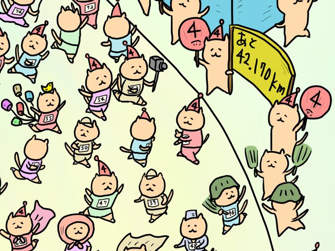 猫市猫山市民マラソン大会では残りの距離を教えてくれる猫がいます👍 #イラスト好きな人と繋がりたい #絵描きさんと繋がりたい #drawings #猫好きさんと繋がりたい #イラスト #digitalart #drawings #CatsOnTwitter #illustration #illusRT #マラソン #猫 #猫がいる暮らし #ランニング #ランナー