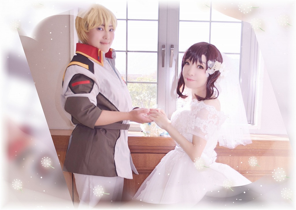 【コスプレ】(宅コス) マリュー・ラミアス(捏造ウェディングver.2) マリュ誕で指輪もらった続きをドリーム展開(笑)💐 以前は別キャラコス衣装改造だったけど今回は奮発本物ドレス✨✨ 私の本気マリュ愛爆発させてみた💕 #cosplay #コスプレイヤーさんと繋がりたい