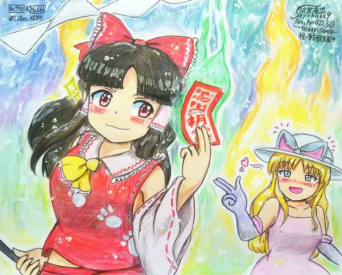 攻守万能の巫女! ここにあり!✨ (決まった!) +20分 (1時間20分) #博麗霊夢 #深夜の真剣お絵描き60分一本勝負 (東方版・1750回目参加) #マリー #東方版もうひとつの深夜の真剣お絵描き60分一本勝負 (もうひとつ版・664回目参加) (※4月29日お題) #東方獣王園