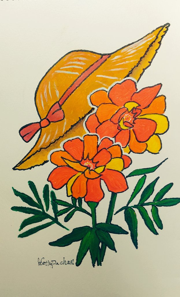𓊆Soucis fraîchement cueillis𓊇 摘みたてのマリーゴールド。 #illustration #イラスト好きな人と繋がりたい #イラスト #マリーゴールド #marigold #女の子イラスト