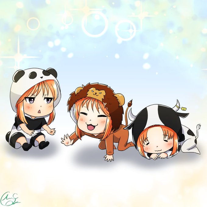 子供服と プルプルツープルじゅーに 漫画動画に出てくる 子供キャラには かわいく見える服を こだわって描いてます✨ 最近はこのフード付きアニマル服が お気に入りです🐼🦁🐮 #絵描きさんと繋がりたい #イラスト好きな人と繋がりたい #プル #プルツー #マリーダさん