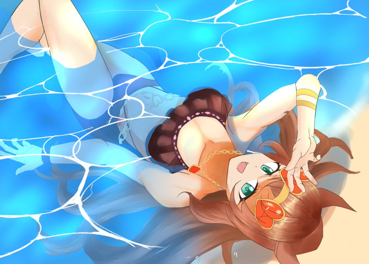 #過去作再掲シリーズ ⑥ #ウマ娘 #マルゼンスキー 何度も再掲してて、申し訳ないですが、ここで水マル姉さんですね。 この時初めて水着キャラ描きました。 あと、個人的に縦長のイラストが好きで、憧れの縦長1作目でもあります。 この絵のおかげでフォロワー様増えたの覚えております。(>人<)