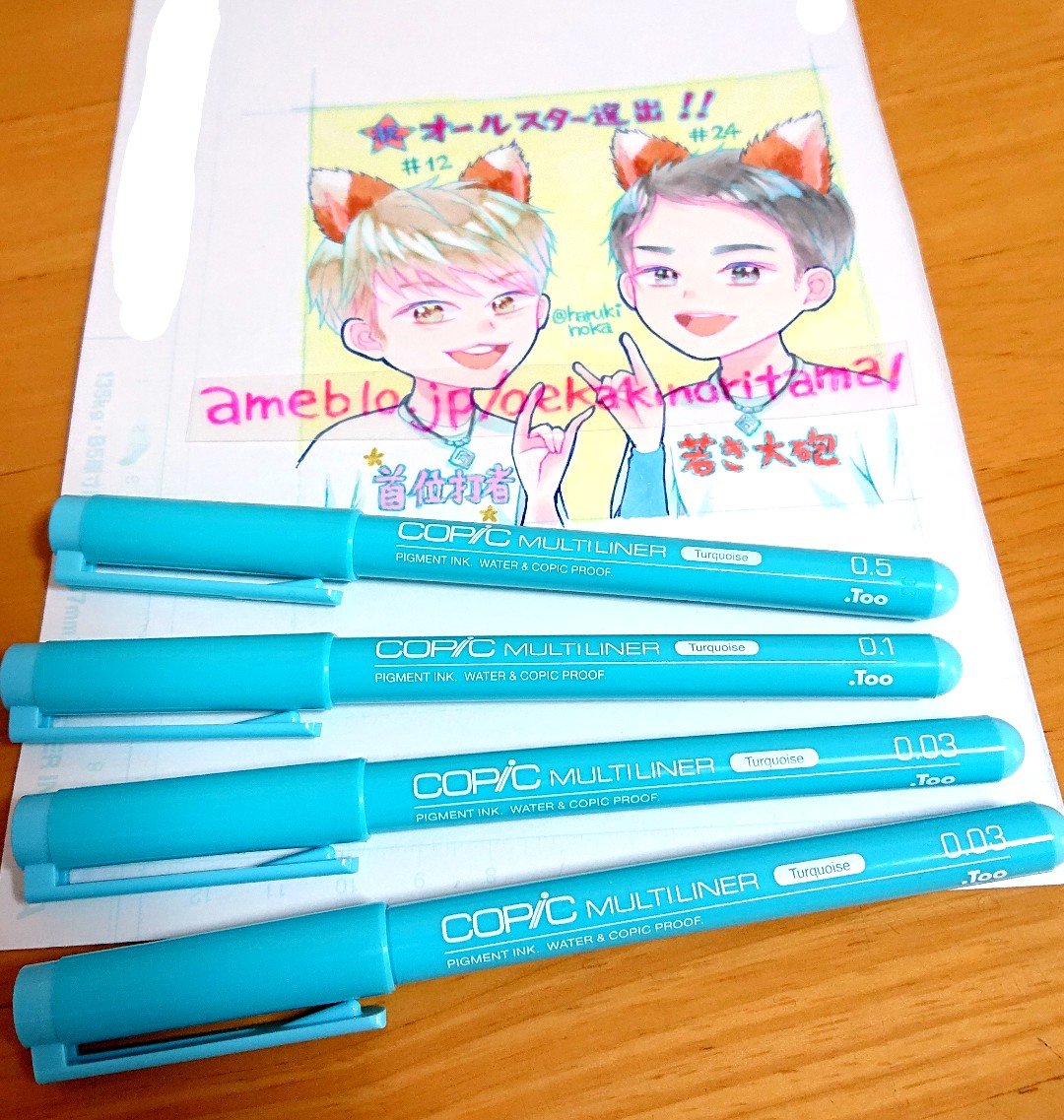 載せるの遅くなったけどマルチライナーターコイズの写真💙 マルチライナーずっと水色系の色出て欲しいと思ってたからようやく叶って良かった🌟 ぜひ定番化して欲しいなあ~ #マルチライナーターコイズ #コピック #copic twitter.com/harukinoka/s…