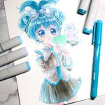 ターコイズ購入しましたー! めっちゃ綺麗な色でBGと相性抜群すぎる💙💙💙数量限定なのがもったいない…(線画盛大な描き忘れがありますが見なかったことにしてください😇) #イラスト #創作 #コピック #コピックイラスト #illustration #マルチライナーターコイズ