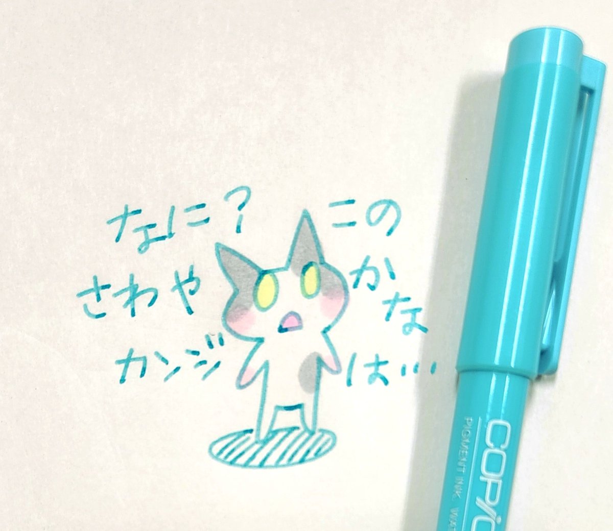 やっとマルチライナーのターコイズ買えて、この色ならば最初に描くのは絶対にコレだと思って描いたポジちゃん(*^◯^*) しかし描いたのがコピー用紙だったせいか、マルチライナーピンクがやたら濃い色に出た… #コピックマルチライナー #マルチライナーターコイズ
