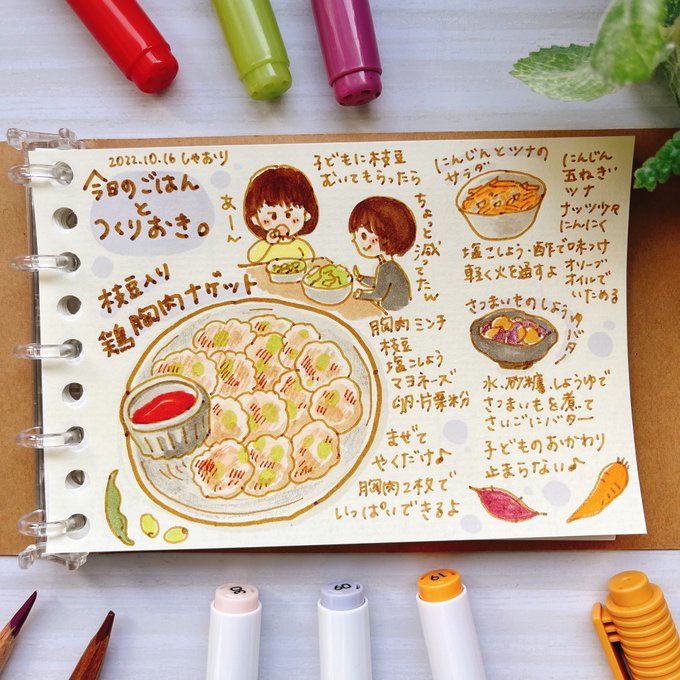 千切り、みじん切り、包む、混ぜる料理をした時は頑張った💪🏼って思う😂 #昨日のごはん #絵日記 #アナログイラスト #マルマンルーズリーフ #マルマンスケ部 twitter.com/shaoillust/sta…