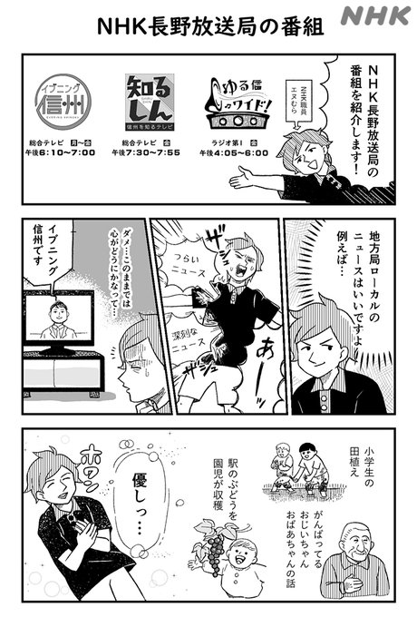 金曜夜8時です エヌむらです 長野局の番組名はすべてに しん or 信 が入っています イブ信・知るしん・ゆる信 コーナー名にも しん 信 しん 信 しん 信 … nhk.or.jp/nagano/90th/co… #NHK長野 #マンガで見てみる長野局 #dollly