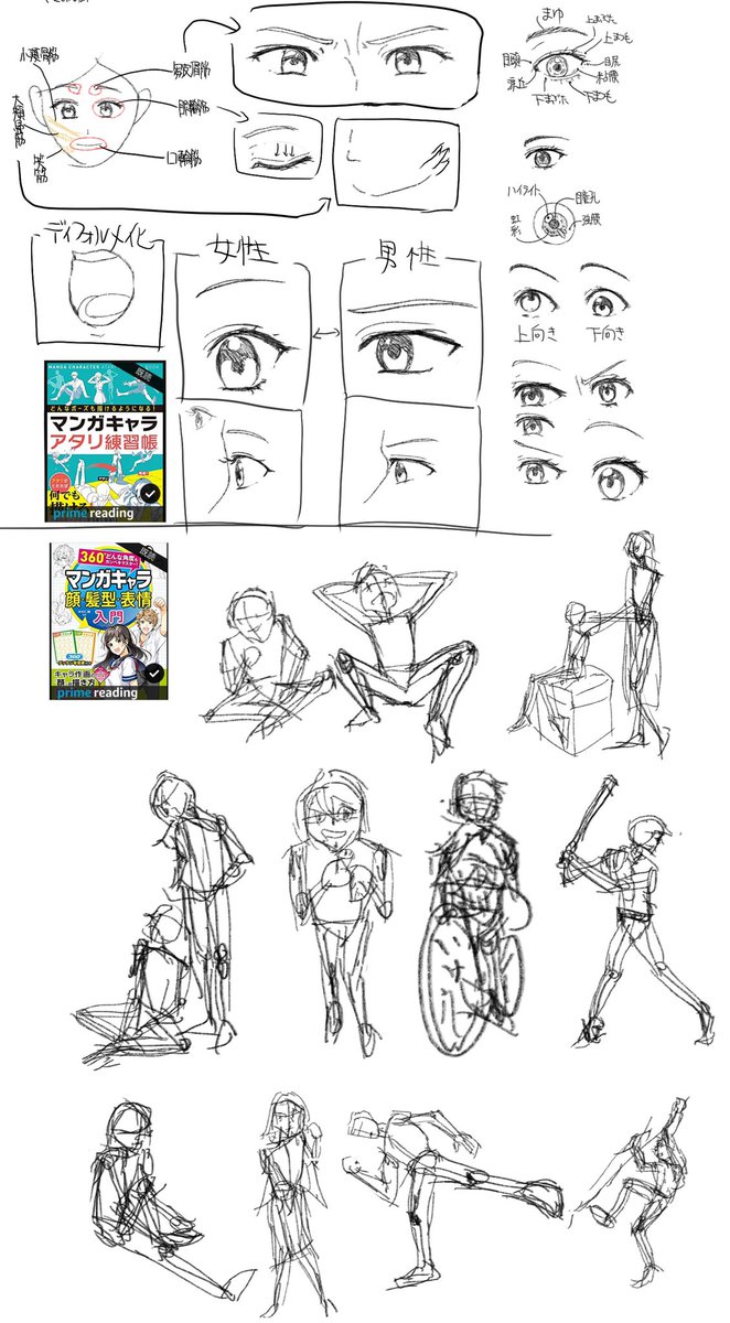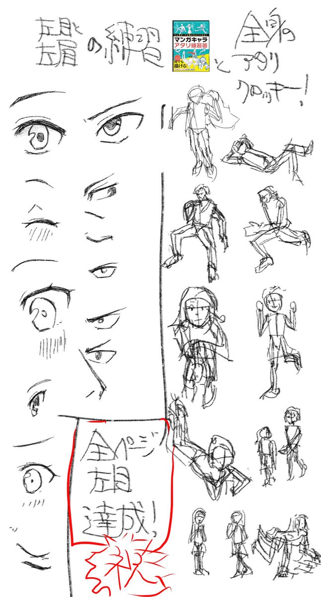 「目の練習と〜全身の練習〜!」 #イラスト練習 #クロッキー練習 #目 #神絵師目指してます #マンガキャラアタリ練習帳 #マンガキャラ入門 PS:筋肉もここが縮んで漫画補正で〜等 味わいながら描くといとをかしやん〜焦らない焦らないひと休みひと休み