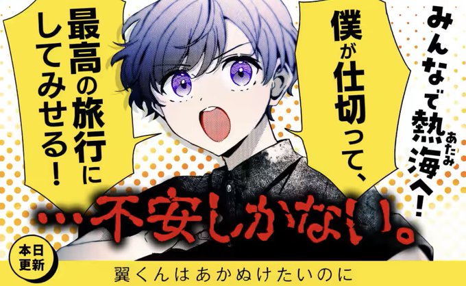 本日125話通常公開です! シェアハウスメンバーで熱海旅行後編、大ハプニングが起きてます。神はいくつの試練を翼くんに与えたら気が済むんでしょうか #翼くんはあかぬけたいのに #マンガワン manga-one.com/title/86/214203