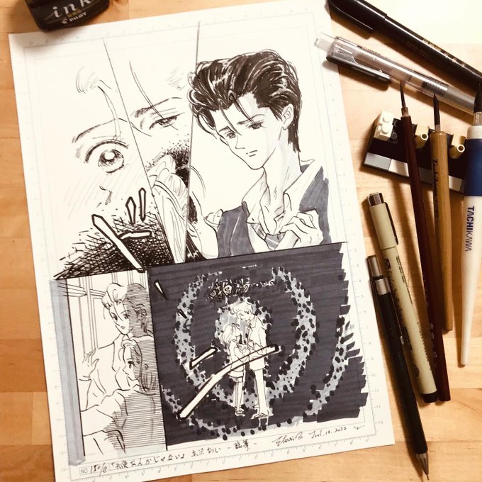 畫完前三張才發現缺了最開始音樂「stand by me」響起的那一頁分鏡,補完,四張串聯起來的阿晃和小翠跳舞情節,好喜歡這一段~ 矢澤愛「我不是天使」①臨摹第一部分,完~ 今天「矢澤愛展」開幕了~好想去~ #マンガ模写 #天使なんかじゃない #イラスト