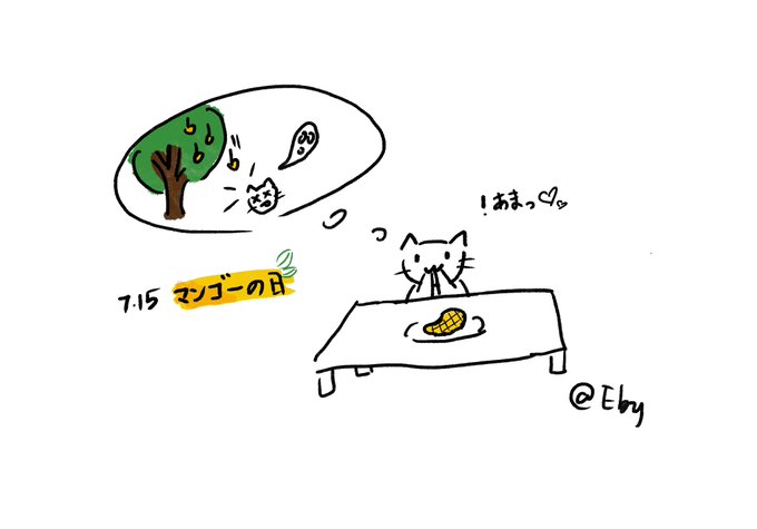 こんにちは☀️ 今日は #マンゴーの日 🥭 私が住んでるところは マンゴー木を街路樹としてたくさん植えたので 夏になるとマンゴーが頭に落ちて来るのが怖い😂 でもやっぱりマンゴーは甘くておいしいですね😋 #今日は何の日 #イラスト好きな人と繋がりたい #イラスト #猫 #絵描きさんと繋がたい