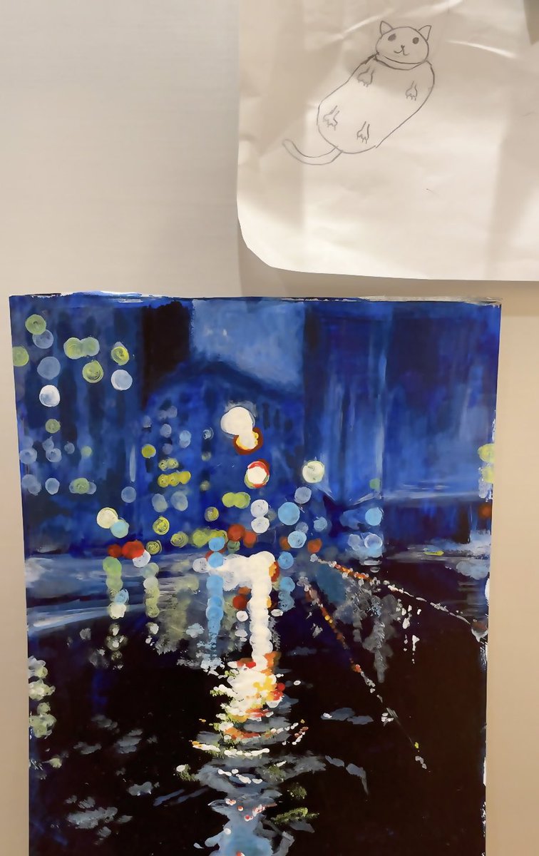 #猫絵 🐈🖼新作です “Munchkin Prince”(木製パネルにアクリル絵具、F0号) モデルは #マンチカン の男の子😻ふわふわ毛並みの王子様ネコちゃん、明るいトーンで描いてみました😅 #絵描きさんと繋がりたい #猫好きさんと繋がりたい #アナログ絵 #アクリル画