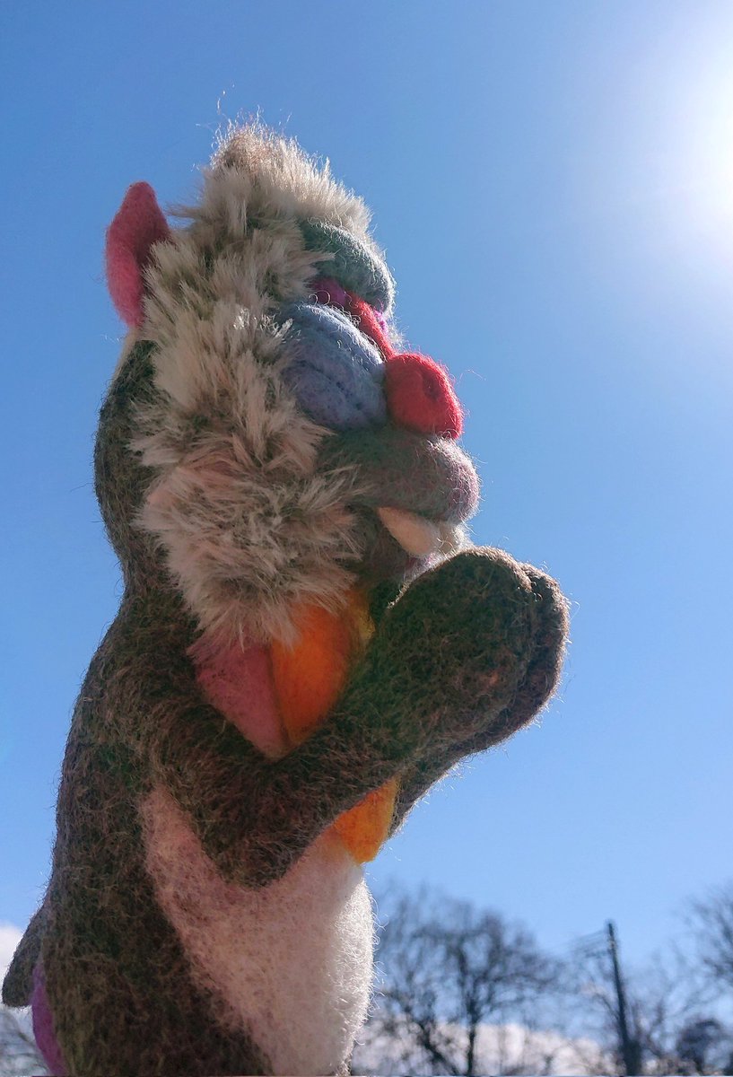 #minne100問100答 68. #プレゼントにおすすめ ダンディなマンドリルなんて、いかがですか? インパクトあります。 minne.com/@chicchicfelt #羊毛フェルト #人形制作 #マンドリル