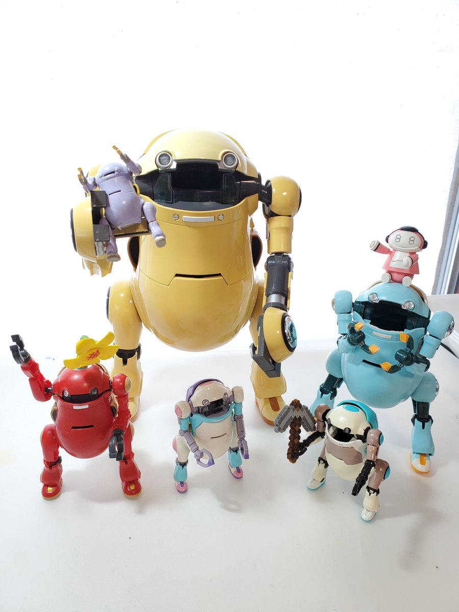 全員揃ったー!!!(*´∀`*) オリジナルちゃんだけ持ってなくて、最近見かけないので諦めてたんですが、たまたま発見! 一撃で来てくれました(´TωT`) 80'sちゃん、ロピアタンのスコップ強奪…(笑) #マンドレイクコレクション #メカトロウィーゴ #ロピアタン
