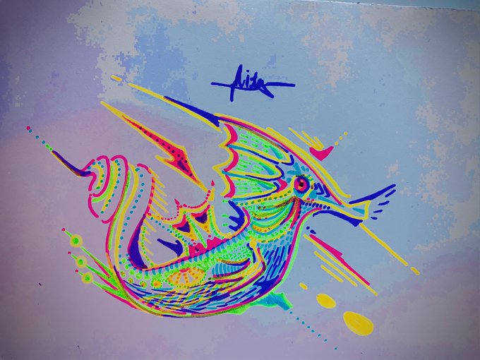 『フライパンの中に猫がいるアート』 独特なアートです。 #イラスト #イラスト好きな人と繋がりたい #絵描きさんと繋がりたい #ohuhuマーカー #マーカーイラスト #猫 #癒し #ほんわか #ポップアート
