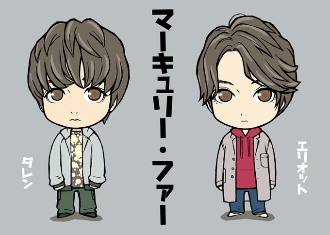 「#マーキュリー・ファー」本日、10時から配信開始ですよ。ついでにうちのエリオット&ダレン・第1形態~第4形態を。(第2と第3の間に何があった?ツッコミ待ち) #吉沢亮 #北村匠海 t.pia.jp/pia/ticketInfo…