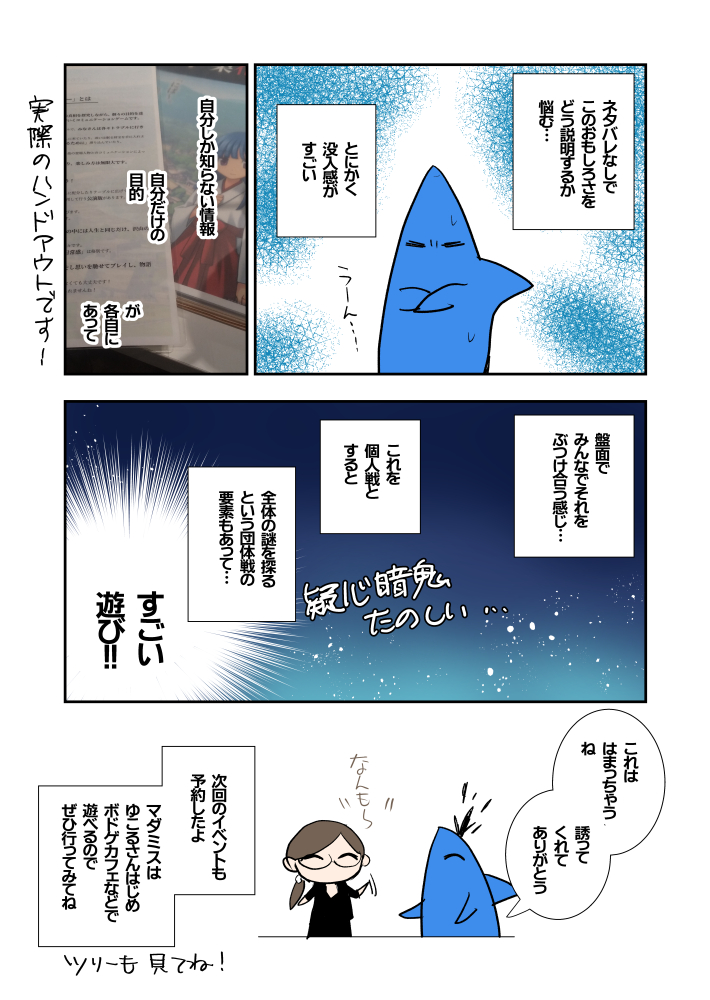 「推理能力0点なハルマキがマーダーミステリーをやった話!」 知ったのはここ1年ぐらいですが、まともに推理できた事ないです💦 ↓ブログ「もみあげカワウソのマンガな話」 harumaki-manga-energy.com #漫画が読めるハッシュタグ #漫画 #創作漫画 #マダミス #マーダーミステリー