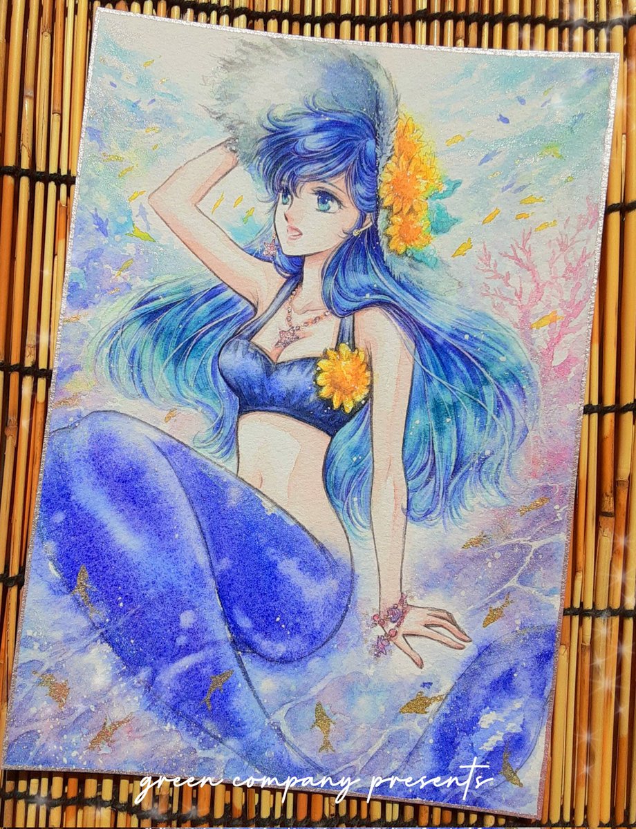 ちょっと涼しげなマーメイドで❤️°・🐠 沖縄の海に行きたいな〜🏖 #イラスト #イラスト好きな人と繋がりたい #絵描きさんと繋がりたい #絵描き #illustration #夏の創作クラスタフォロー祭り #みんなで楽しむTwitter展覧会 #創作イラスト #マーメイド #人魚姫