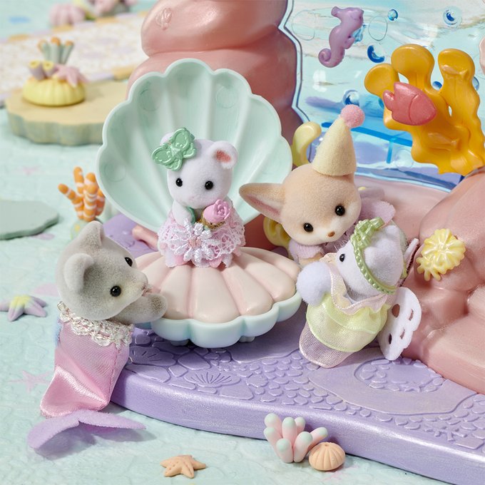 7月8日発売の新商品🎉 「ゆめみるプリンセスのマーメイドショップ」 メーカー希望小売価格:3,600円(税込) sylvanianfamilies.com/ja-jp/catalog/… 貝の形をしたお店と、海がテーマのアクセサリー小物、シルクネコの赤ちゃんのセットです✨ #シルバニアファミリー #シルバニア #新商品 #マーメイド