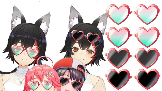 ハートサングラスの素材 レンズ薄いものと濃い物を用意致しました。 御自由にどうぞッ! ↓透化 サイズは少し大きめです。 drive.google.com/drive/folders/… #ミオみこスバスペース #みおーん絵 #miko_Art #プロテインザスバル