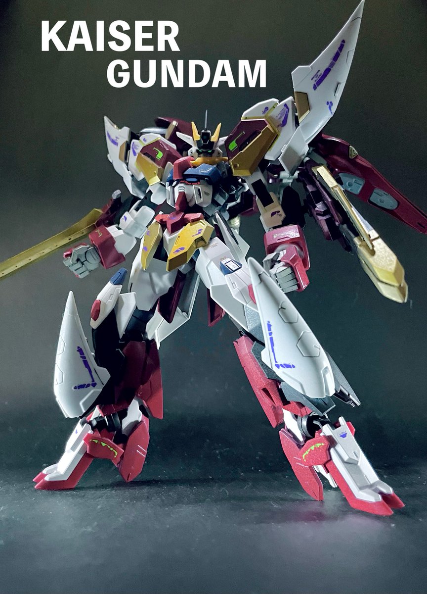 カイゼルガンダム完成しました! ド直球なネーミングww スパロボ感全快で仕上げました♪ めっちゃ頑張ったので評価して貰えたら嬉しいです(о´∀`о) いいね来い来い!ψ(`∇´)ψカモーン! ※画像は一部加工してます。 #ガンプラ好きと繋がりたい #ガンプラ #ミキシング
